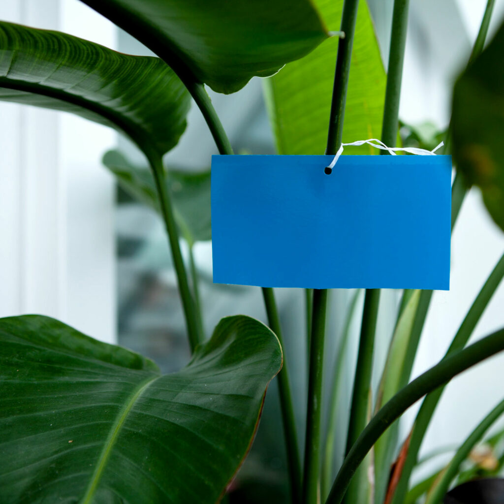 Die Anwendung von Leimtafeln ist super einfach. Man nimmt sie einfach aus der Verpackung und hängt sie an die Pflanze, ähnlich wie Weihnachtsschmuck. Oder man steckt sie in die Erde. Geht auch.